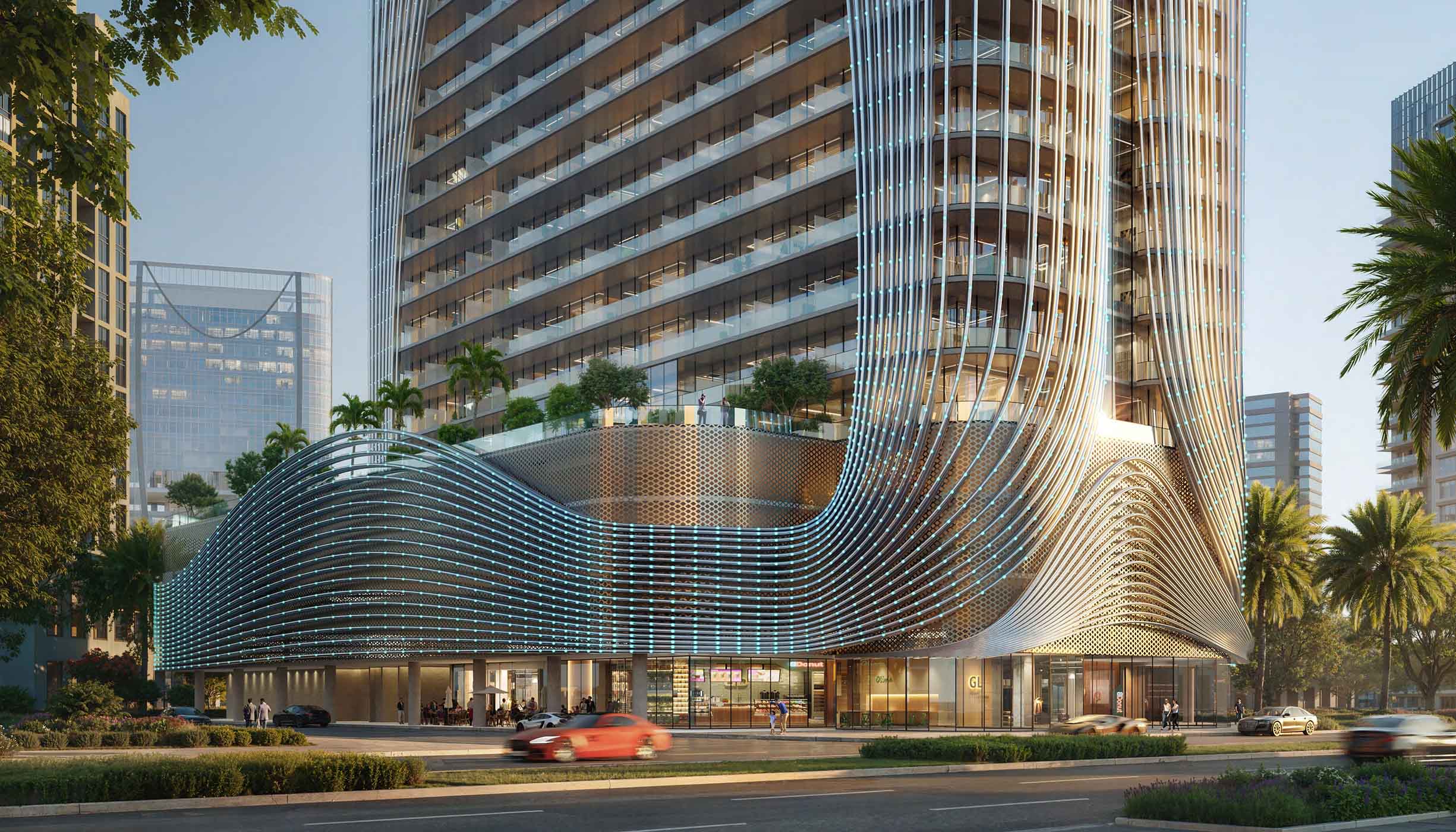 • Distinctive architectural design with futuristic glass and metal finishes